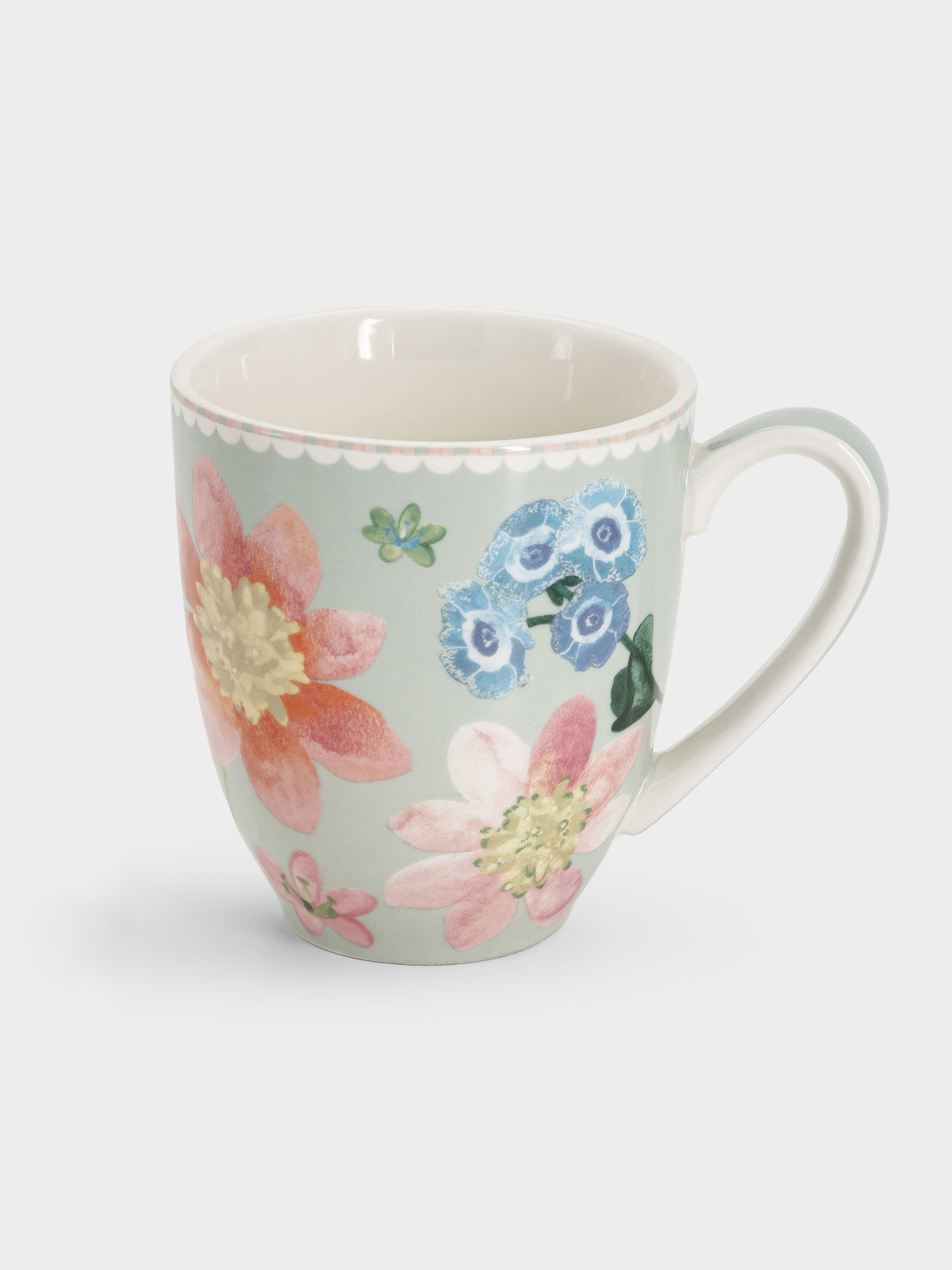 Кружка, 375 мл, фарфор P, серо-зеленая, Примула, Primula. Материал: фарфор Рorcelain. Мыть тёплой водой с применением жидких моющих средств и в посудомоечной машине. Можно использовать в СВЧ.