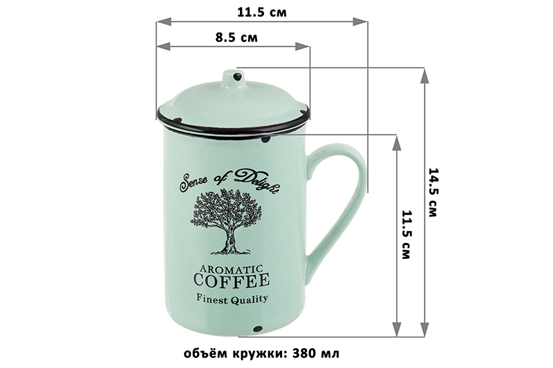 Кружка 380 мл 11,5*8,5*14,5 см "Sense of Delight" + крышка, мятная