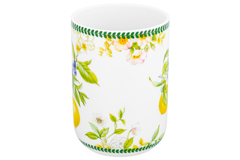 Кружка из серии «Лимоны» предназначена для красивой сервировки стола. Размер ёмкости – 11,5х7,5х10,5 см, объём – 400 мл. Выполнена из фарфора нового поколения new bone china, сочетающего в себе изящность и высокую прочность. За счёт гладкости изделия легко отмываются, поэтому долго сохраняют привлекательный вид и практичны в использовании. Плотная структура материала позволяет посуде дольше сохранять температуру блюд и напитков. От других видов костяного фарфора new bone china отличается большей экологичностью в производстве. Фарфоровая посуда с ярким рисунком в виде лимонов станет изящным дополнением интерьера любой кухни или столовой. Чашка поможет провести множество приятных завтраков с капучино или латте, а также уютные чайные вечера с конфетами, вафлями или другими сладостями. Подойдёт ценителям чая и кофе, которые любят пить из красивой и необычной посуды. Согрейтесь зимой любимым горячим напитком: какао с маршмэллоу, ягодным чаем, горячим шоколадом, или освежитесь лимонадом летом. Не рекомендуется применять абразивные моющие средства. Подходит для использования в посудомоечной машине и микроволновой печи. Поставляется в красивой картонной коробке – благодаря ей вам не потребуется дополнительная подарочная упаковка. Кружка станет оригинальным подарком для любой хозяйки и незаменимым элементом сервировочного инвентаря в вашем доме!