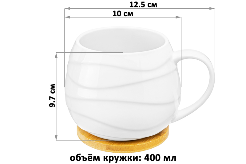Кружка серии "Айсберг волны" объемом 400 мл имеет крышку-подставку и выполнена в форме бочонка. Такая кружка хорошо удерживает тепло и поможет провести множество приятных чаепитий. Кружка выполнена из высококачественного фарфора и украшена рельефными узорами. Подходит для чая, кофе, сока, лимонадов и других напитков. Фарфор не впитывает цвет напитков и не деформируется от влаги. Фарфоровая кружка долгое время будет выглядеть, как новая! Кружка без крышки-подставки подходит для использования в микроволновой печи и посудомоечной машине. Поставляется в яркой картонной упаковке. Кружка из серии посуды "Айсберг волны" сможет стать настоящим украшением кухни или приятным подарком для ваших родных и близких!
