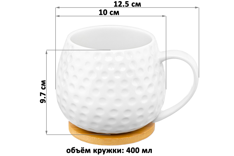Кружка серии "Сфера" на 400 мл украшена рельефными узорами и имеет бамбуковую крышку - подставку. Кружка - бочонок поможет провести множество приятных завтраков с капучино или латте, а также уютных чайных вечеров. Кружка выполнена из высококачественного белого фарфора и украшена декоративными рельефными узорами. Фарфоровые чашки отличаются от керамических повышенной плотностью. Они не впитывают цвет кофе, чая, глинтвейна, других горячих напитков и не деформируются от влаги, чему может быть подвержена керамика. Кружку без крышки можно использовать в СВЧ и ПММ. Крышку-подставку нельзя замачивать. Посуда поставляется в стильной картонной упаковке. Красивая кружка из серии посуды "Сфера" сможет стать настоящим украшением кухни и дома или приятным подарком для родных и близких!