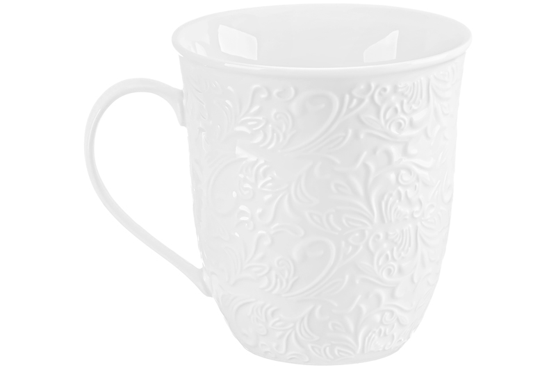 Кружка Elan Gallery "Лоза" размером 12,5х9,5х10 см и объёмом 400 мл выполнена из белого фарфора с рельефным узором. Кружечка подходит ценителям чая и кофе, которые любят пить из красивой и необычной посуды. Это идеальный вариант для того, чтобы согреться горячим напитком зимой и освежиться прохладным лимонадом летом. Интересная кружечка с удобной ручкой украсит ваш стол своим стильным дизайном как на праздник, так и в будни. Кружка поможет провести множество приятных завтраков с капучино или латте, а также уютных чайных вечеров. Выполнена из высококачественного белого фарфора. Фарфоровые чашки отличаются от керамических повышенной плотностью. Они не впитывают цвет кофе, чая, глинтвейна, других горячих напитков и не деформируются от влаги, чему может быть подвержена керамика. Можно использовать в микроволновой печи и мыть в посудомоечной машине. Поставляется в стильной картонной упаковке. Белая фарфоровая кружка "Лоза" порадует ваших близких на любой праздник или станет настоящим украшением вашей кухни!