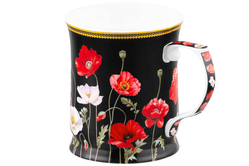 Кружка 400 мл 12,5*9*10 см "Маки на черном" NEW BONE CHINA
