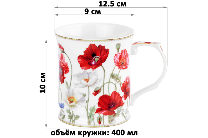 Кружка Elan Gallery "Маки" размером 12,5х9х10 см и объёмом 400 мл выполнена из фарфора нового поколения new bone china. New bone china сочетает в себе изящность и высокую прочность. От других видов костяного фарфора материал отличается большей экологичностью в производстве. Серия "Маки" украшена красочным принтом с крупными цветами. Изображение красных и белых маков на фарфоре добавит ярких красок вашей кухне. В коллекции вы найдёте любые принадлежности для эстетичной сервировки. Кружечка подходит ценителям чая и кофе, которые любят пить из красивой и необычной посуды. Это отличный вариант для того, чтобы согреться горячим какао зимой и освежиться прохладным лимонадом летом. Интересный бокал с удобной ручкой украсит ваш стол своим стильным дизайном как на праздник, так и в будни. Пейте молоко или кефир и наслаждайтесь красивой картинкой! В офисе станет незаменимым предметом для чаепития или перерыва на капучино и латте. В отличие от керамики фарфор не впитывает цвет и запах напитка, легко отмывается и сохраняет свой привлекательный вид долгие годы. Не рекомендуется применять абразивные моющие средства. Можно использовать в микроволновой печи и мыть в посудомоечной машине. Поставляется в красочной картонной коробке. Фарфоровая посуда станет приятным подарком на любой праздник. Благодаря стильной коробочке вам не понадобится дополнительная подарочная упаковка. Наслаждайтесь любимыми напитками из этой кружечки сами, либо сделайте сюрприз своим близким! Серия "Маки" позволит собрать чайный или кофейный сервиз в едином стиле и станет украшением вашего дома.