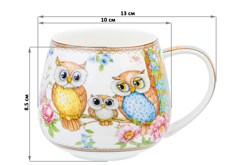 Кружка 400 мл 13*10*8,5 см "Совушки" бочонок NEW BONE CHINA