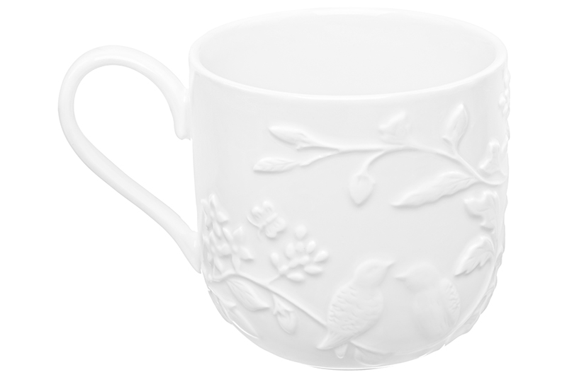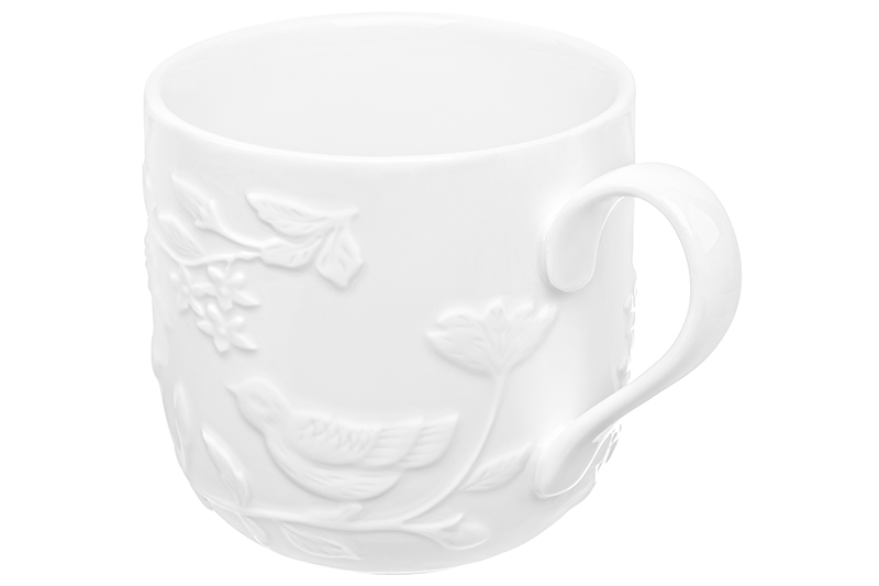 Кружка Elan Gallery "Птички на ветке" выполнена из белого фарфора с рельефным узором. Размер чашки – 13х9х9 см, объём – 400 мл. Кружечка подходит ценителям кофе, которые любят пить из красивой и необычной посуды. Это идеальный вариант для того, чтобы согреться горячим напитком зимой и освежиться прохладным лимонадом летом. Можно использовать и для других напитков, например, чая. Интересная кружечка с удобной ручкой украсит ваш стол своим стильным дизайном как на праздник, так и в будни. Можно использовать в микроволновой печи и мыть в посудомоечной машине. Поставляется в стильной картонной упаковке. Красивая кружка станет отличным подарком для ваших близких или настоящим украшением вашей кухни.