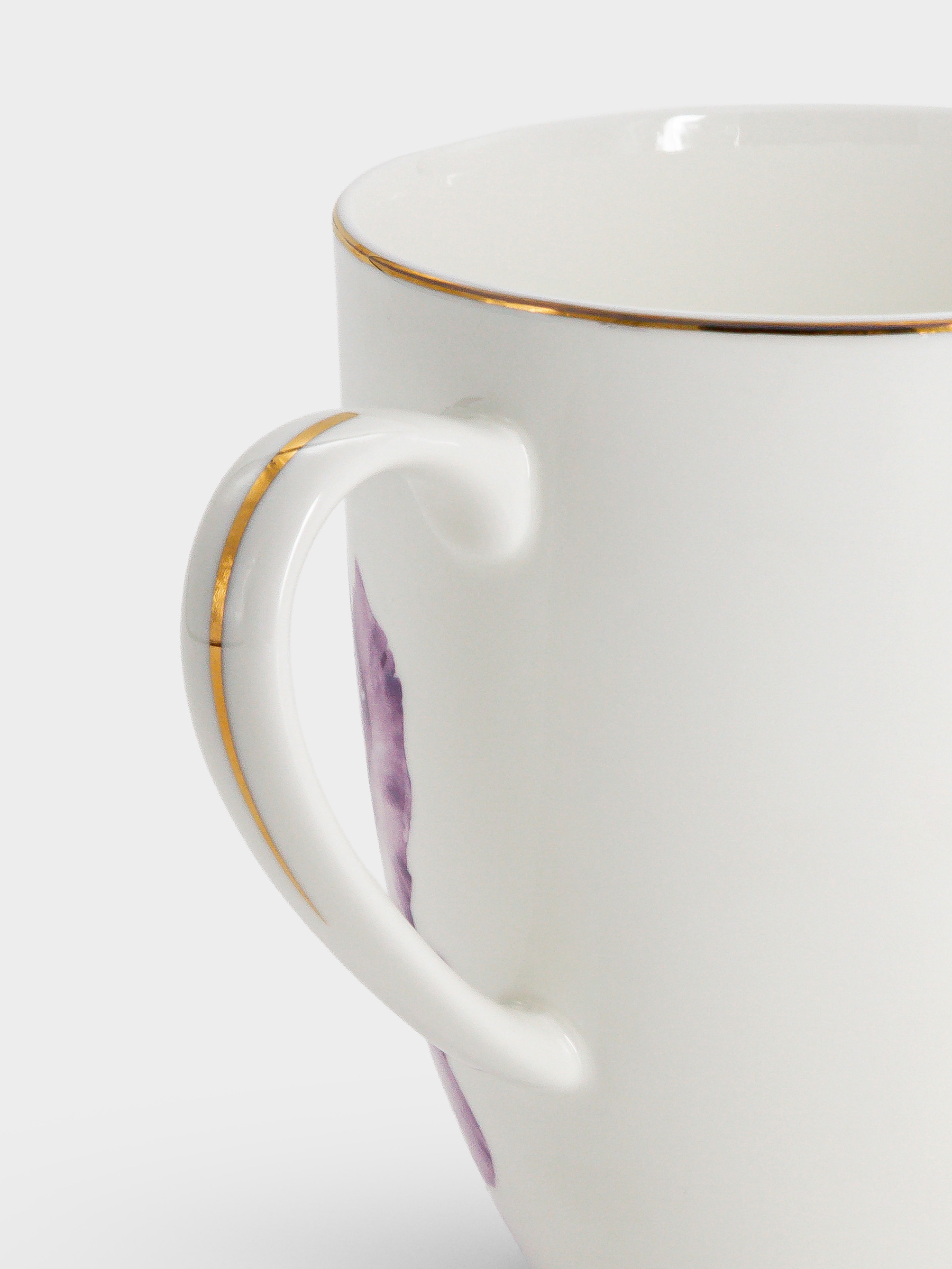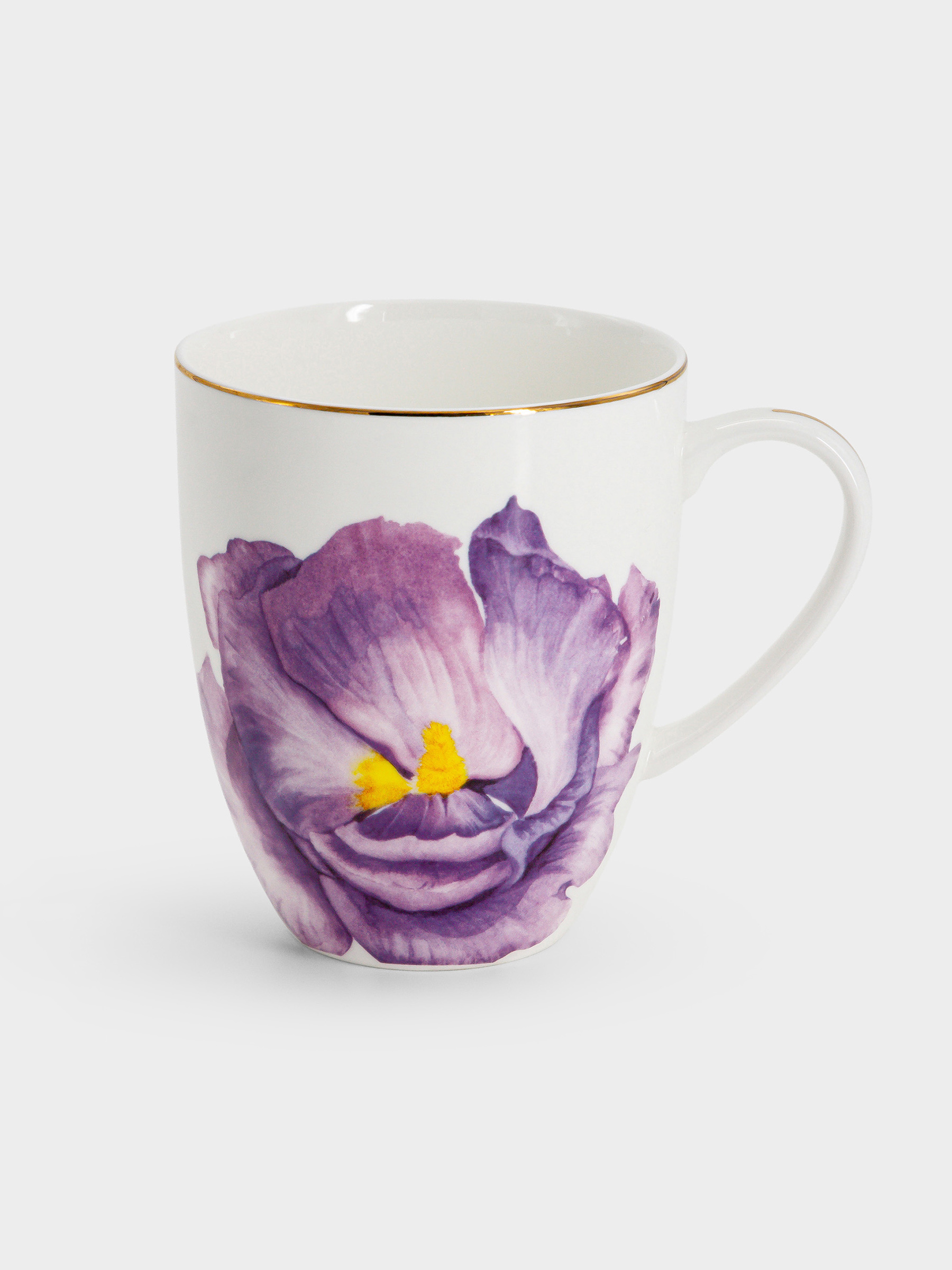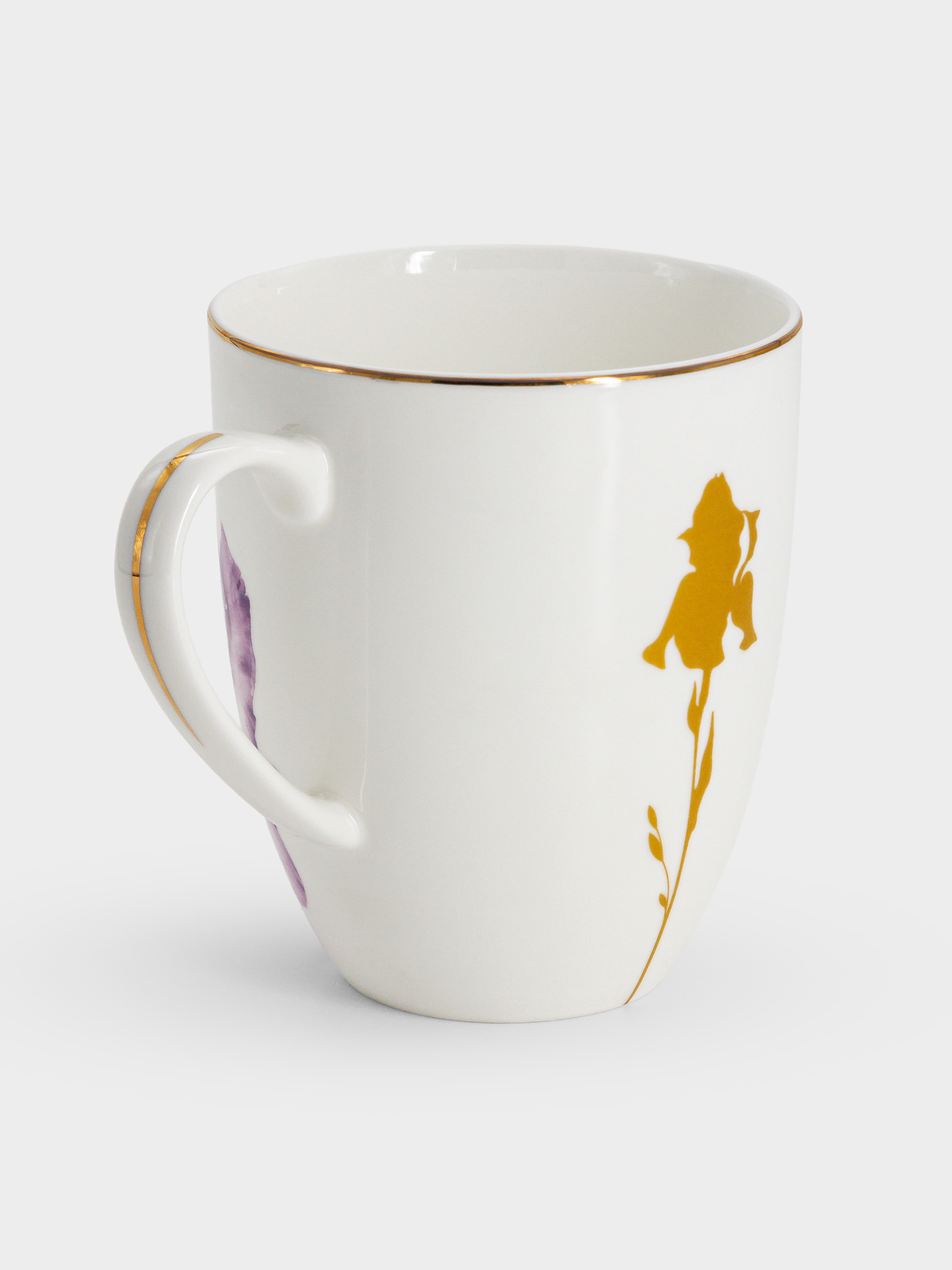 Кружка, 400 мл, фарфор F, белая, с золотистым кантом, Ирис, Flowers. Материал: фарфор Fine Bone China. Мыть тёплой водой с применением жидких моющих средств. Не использовать в СВЧ и в посудомоечной машине.