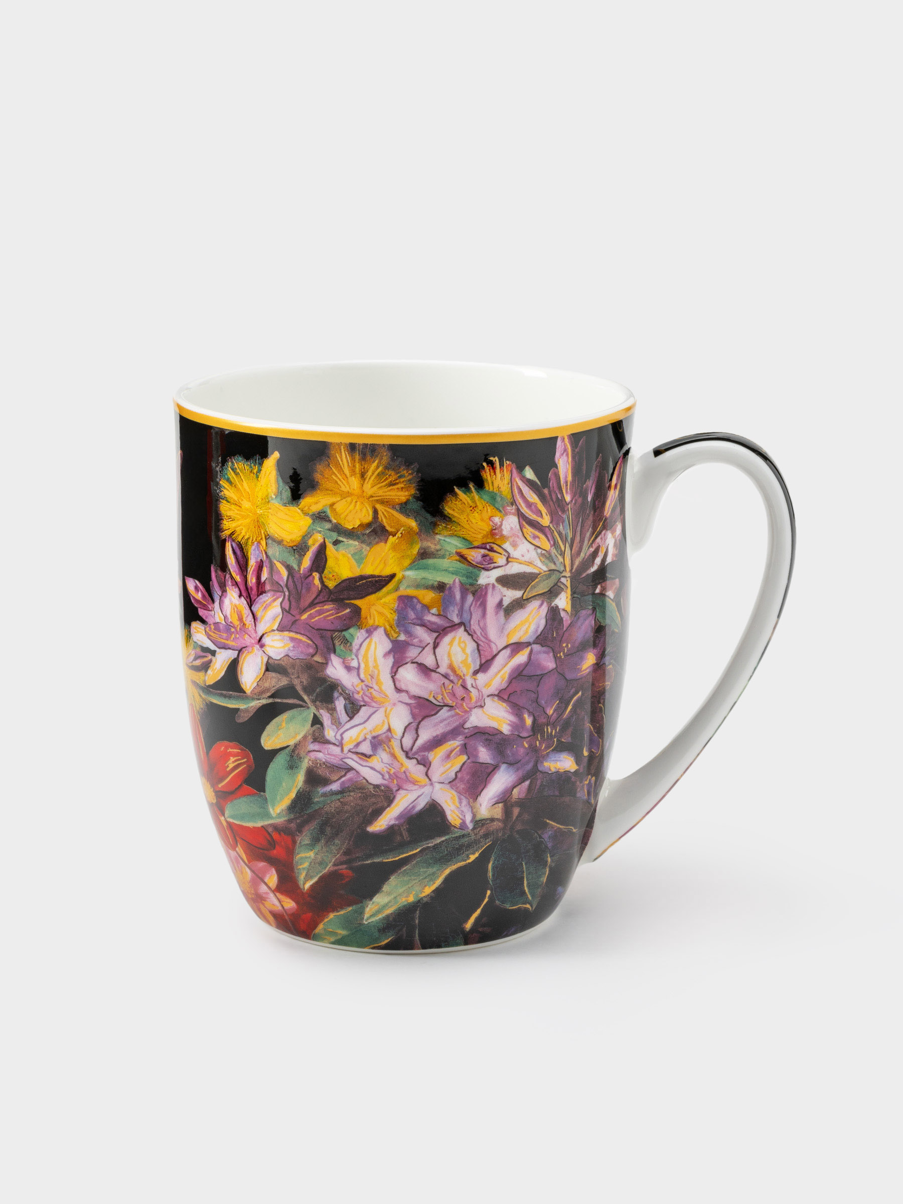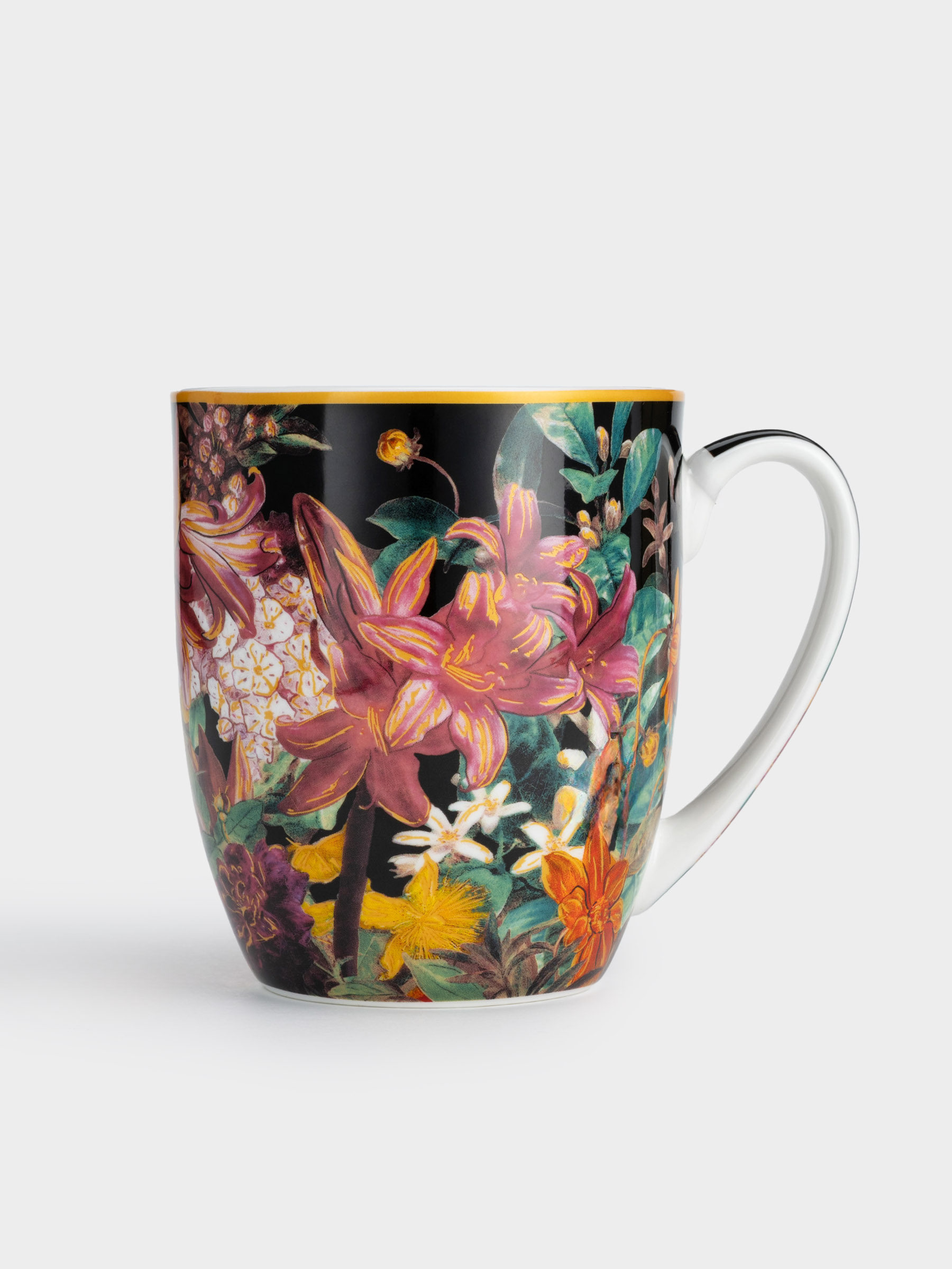 Кружка, 400 мл, фарфор F, черная, Лилии, Baroque flowers. Материал: фарфор Fine Bone China. Мыть мягкими моющими средствами. Можно использовать в СВЧ и мыть в посудомоечной машине. 835