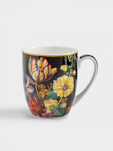 Кружка, 400 мл, фарфор F, черная, Тюльпан, Baroque flowers. Материал: фарфор Fine Bone China. Мыть мягкими моющими средствами. Можно использовать в СВЧ и мыть в посудомоечной машине. 835