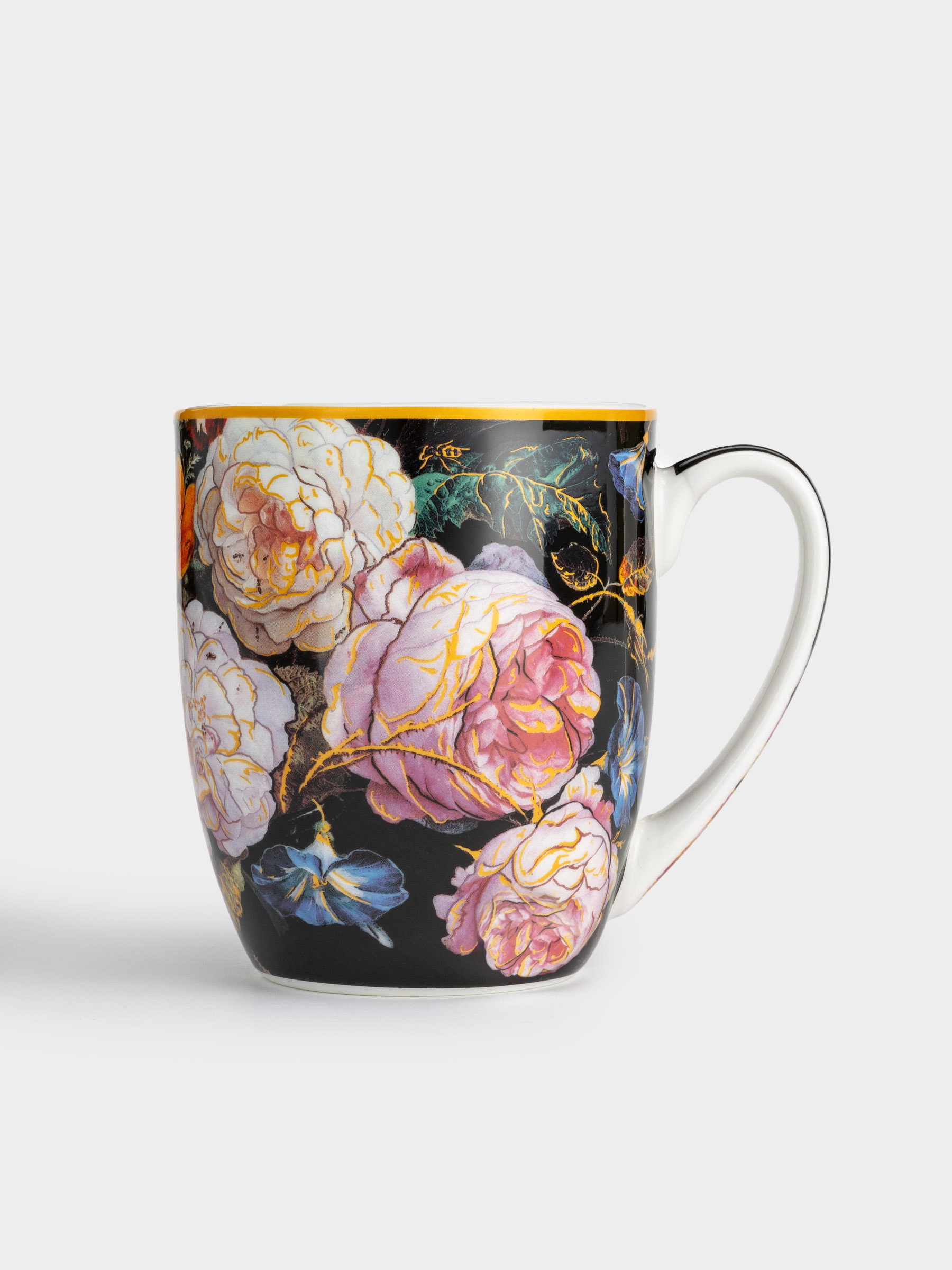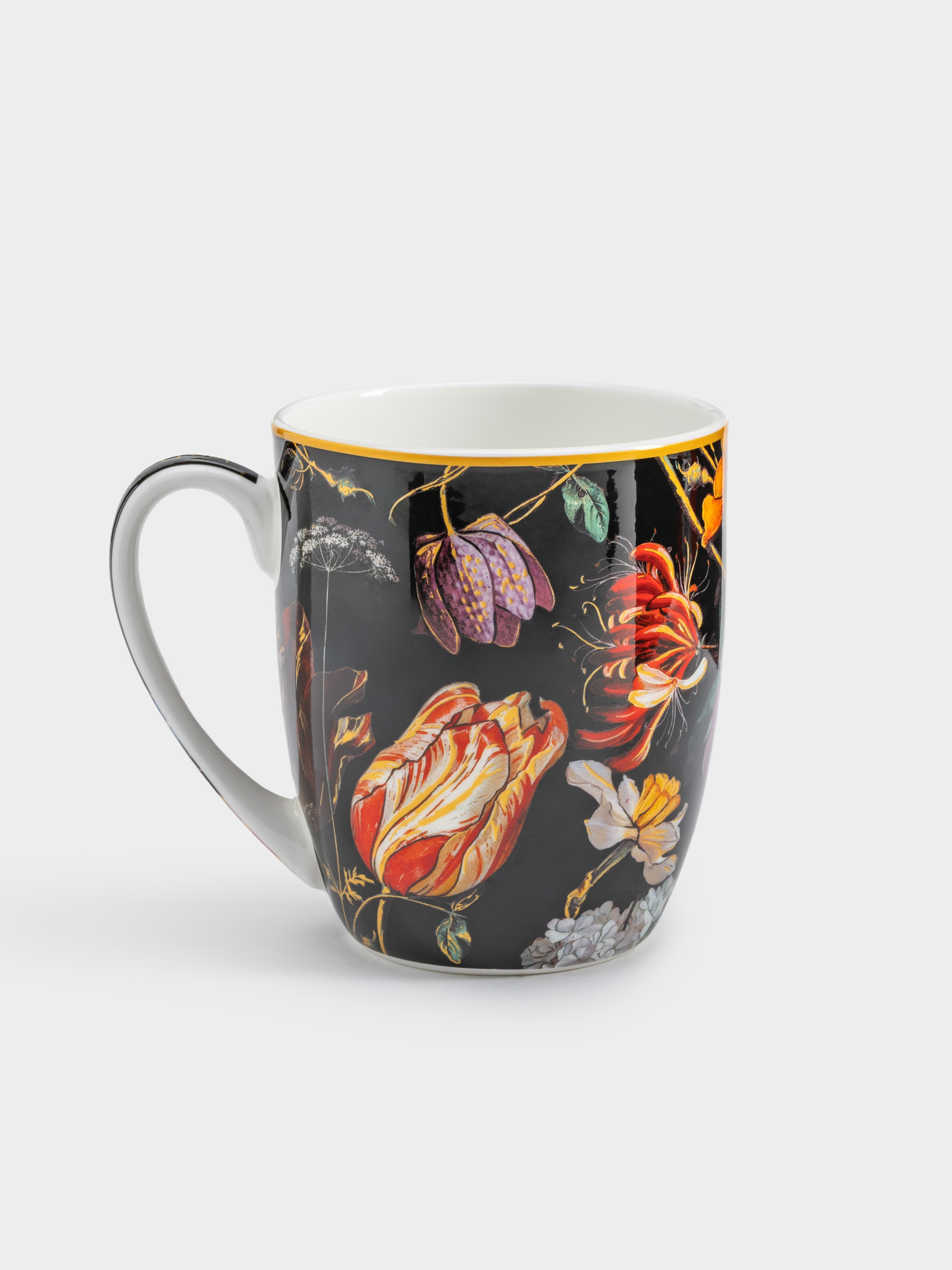 Кружка, 400 мл, фарфор F, черная, Розы, Baroque flowers. Материал: фарфор Fine Bone China. Мыть мягкими моющими средствами. Можно использовать в СВЧ и мыть в посудомоечной машине. 835