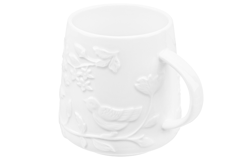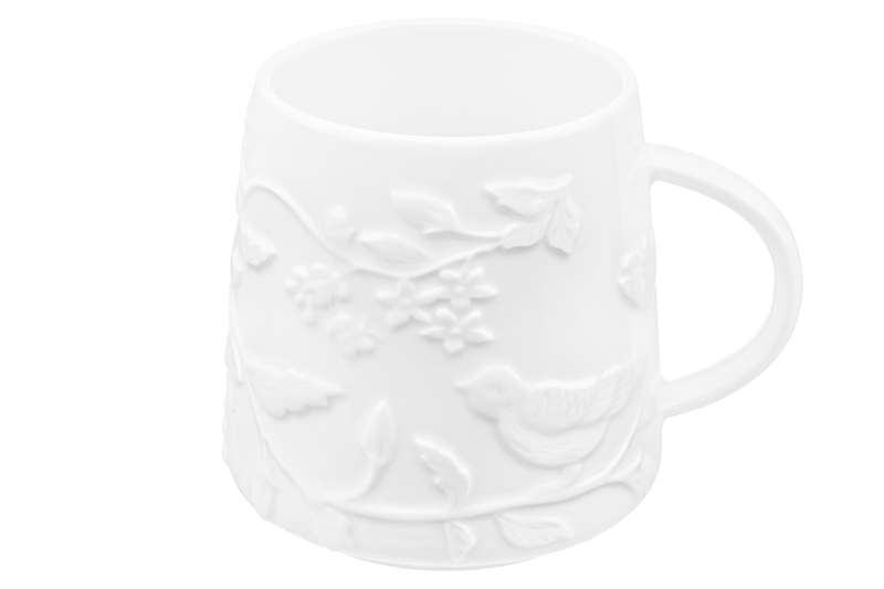 Кружка Elan Gallery "Птички на ветке" размером 12х9х9,5 см и объёмом 420 мл выполнена из белого фарфора с рельефным узором. Кружечка подходит ценителям чая и кофе, которые любят пить из красивой и необычной посуды. Это идеальный вариант для того, чтобы согреться горячим напитком зимой и освежиться прохладным лимонадом летом. Интересная кружечка с удобной ручкой украсит ваш стол своим стильным дизайном как на праздник, так и в будни. Кружка поможет провести множество приятных завтраков с капучино или латте, а также уютных чайных вечеров. Выполнена из высококачественного белого фарфора. Фарфоровые чашки отличаются от керамических повышенной плотностью. Они не впитывают цвет кофе, чая, глинтвейна, других горячих напитков и не деформируются от влаги, чему может быть подвержена керамика. Можно использовать в микроволновой печи и мыть в посудомоечной машине. Поставляется в стильной картонной упаковке. Белая фарфоровая кружка "Птички на ветке" порадует ваших близких на любой праздник или станет настоящим украшением вашей кухни!