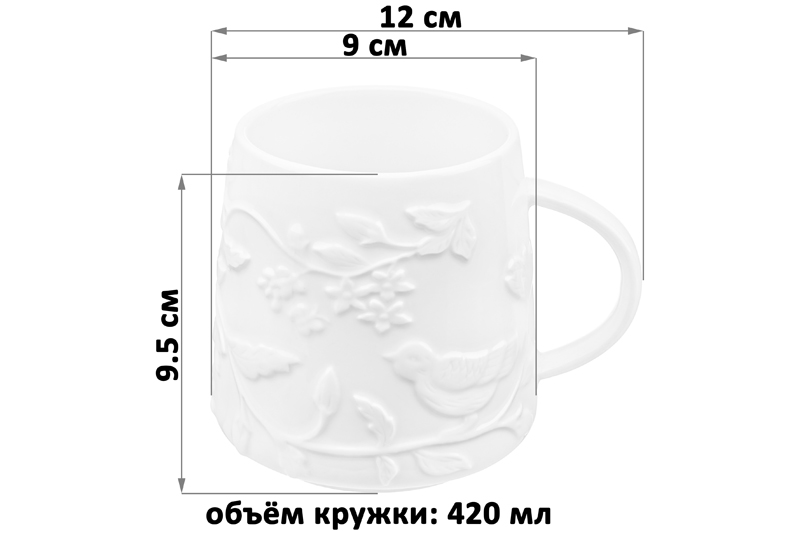 Кружка 420 мл 12*9*9,5 см "Птички на ветке"