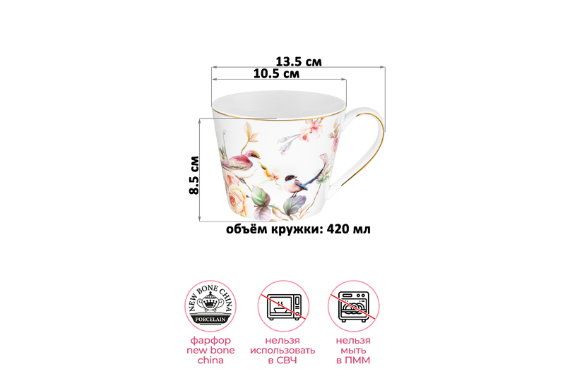 Кружка 420 мл 13,5*10,5*8,5 см "Певчие птички" NEW BONE CHINA, фарфор