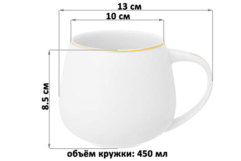 Кружка из серии «Белая с золотом» предназначена для красивой сервировки стола. Размер ёмкости – 13х10х8,5 см, объём – 400 мл. Выполнена из фарфора нового поколения new bone china, сочетающего в себе изящность и высокую прочность. За счёт гладкости изделия легко отмываются, поэтому сохраняют привлекательный вид и практичны в использовании. Плотная структура материала позволяет посуде дольше сохранять температуру блюд и напитков. От других видов костяного фарфора new bone china отличается большей экологичностью в производстве. Белая фарфоровая посуда с элегантным золотистым кантом станет изящным дополнением интерьера любой кухни, столовой и гостиной. Кофейная кружка поможет провести множество приятных завтраков с капучино или латте, а также уютные чайные вечера с конфетами, вафлями, другими десертами и сладостями. Подойдёт ценителям чая и кофе, которые любят пить из красивой и необычной посуды. Согрейтесь зимой любимым горячим напитком: какао с маршмэллоу, ягодным чаем, горячим шоколадом. Летом освежитесь домашним лимонадом или морсом. Декоративная кружечка добавит эстетики любому чаепитию. Не рекомендуется применять абразивные моющие средства. Не подходит для использования в микроволновой печи и посудомоечной машине. Поставляется в картонной коробке. Фарфоровая сервировочная посуда послужит оригинальным подарком для хозяйки, ценящей не только практичность, но и привлекательность. Серия «Белая с золотом» станет украшением любого кухонного инвентаря и позволит собрать сервиз в едином стиле!