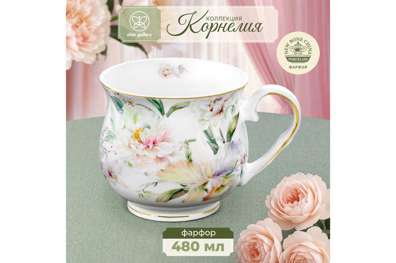 Кружка из серии "Корнелия" от Elan Gallery предназначена для эстетичной сервировки вашего стола. Размер – 13,5х10х9 см, объём – 480 мл. Изготовлена из фарфора нового поколения new bone china, сочетающего в себе изящность и высокую прочность. За счёт гладкости изделие легко отмывается, поэтому сохраняет привлекательный внешний вид и практично в использовании. Плотная структура материала позволяет чашкам дольше сохранять температуру напитков. От костяного фарфора new bone china отличается большей экологичностью в производстве. Поверхность изделия овивают обворожительные белые пионы. Они выполнены в манере, вдохновлённой акварельным рисунком. Тонкая золотистая окантовка служит деликатным акцентом и подчёркивает изысканность. Декоративная кружечка поможет провести множество приятных завтраков с капучино и латте, а также уютные чайные вечера с конфетами, вафлями, другими десертами и сладостями. Подойдёт ценителям чая и кофе, которые любят пить из красивой и необычной посуды. Согрейтесь зимой любимым напитком: какао с маршмеллоу, ягодным чаем или горячим шоколадом. Летом освежитесь домашним лимонадом или морсом. Не рекомендуется применять абразивные моющие средства. Бокал нельзя использовать в посудомоечной машине и микроволновой печи. Поставляется в дизайнерской картонной коробке – благодаря ей вам не потребуется дополнительная подарочная упаковка. Фарфоровая сервировочная посуда станет чудесным подарком на любой праздник и добавит эстетики ежедневному чаепитию. Серия "Корнелия" от бренда Элан Галерея добавит вашему кухонному инвентарю лёгкости и элегантности, преобразив любую сервировку!