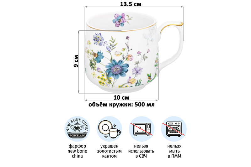 Кружка 500 мл 13,5*10*9 см "Juliette" NEW BONE CHINA