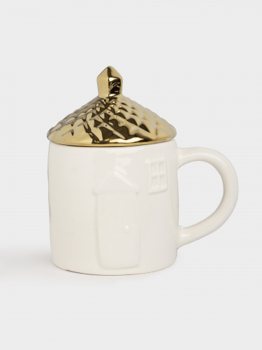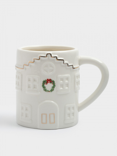 Кружка, 580 мл, фарфор P, бело-золотистая, Дом с венком, Townlet