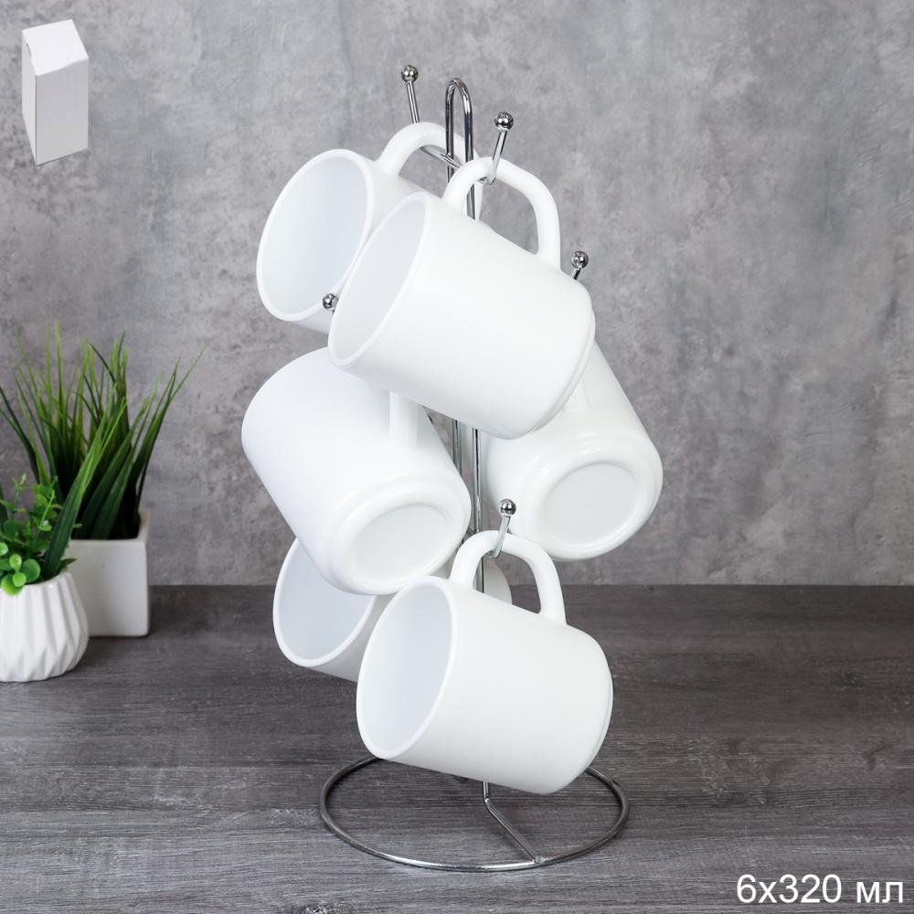 Кружка 6 штук на металлическом стенде 320 мл Гладкая / NB320 (white) 743123