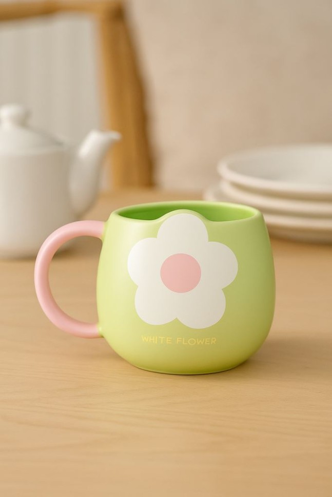 Кружка керамическая «White flower two», green (350 мл)