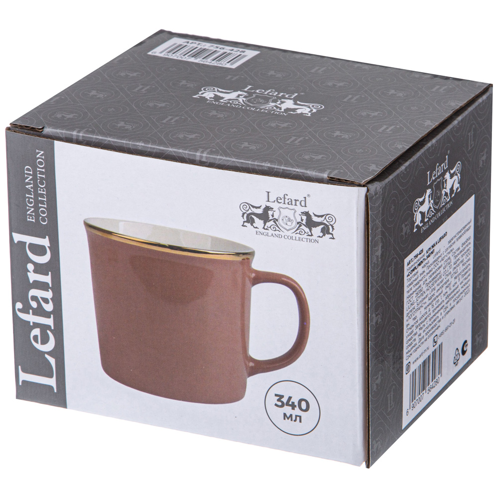 КРУЖКА LEFARD серии "COMPLIMENT" объемом 340МЛ выполнена в стиле минимализм. Приглушенные оттенки и лаконичный силуэт - как символ спокойного дня.Кружки LEFARD - это интересные дизайнерские решения, функциональные и стильные вещи для жизни. Вы можете использовать кружки как чашки для чая, кофейные чашки, так и подавать в них холодные напитки. Кружка идеальна в подарок любимым, друзьям, родным, коллегам, любимой бабушке, жене, лучшей подруге на день рождения, новый год, новоселье, юбилей, просто так без повода.