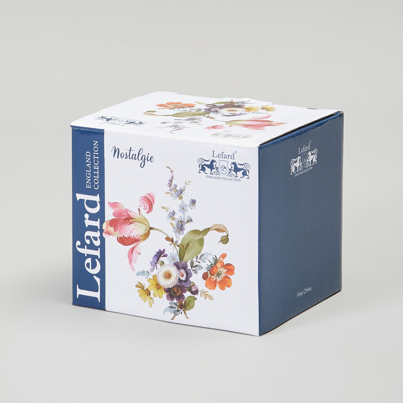 ТМ LEFARD «NOSTALGIE» - это коллекция по мотивам известного декора, появившегося в середине 18 века, в виде цветов и растений, собранных в прекрасные букеты в стиле рококо. Узор, появившийся впервые на изделиях Мейсенской мануфактуры в Германии, до сих пор путешествует по фарфору разных стран. Его можно встретить на немецких сервизах, чешском фарфоре. Дизайнеры LEFARD вдохнули еще одну жизнь в эту знаменитую тему, добавили краски кобальта и золотые элементы. Качественный тонкостенный фарфор, уникальные формы, неизменная классика. Это прекрасный подарок. Посуда прошла сертификацию, безопасна для контакта с пищевыми продуктами. Использовать только мягкие моющие средства. Нельзя мыть в посудомоечной машине, ставить в микроволновую печь.