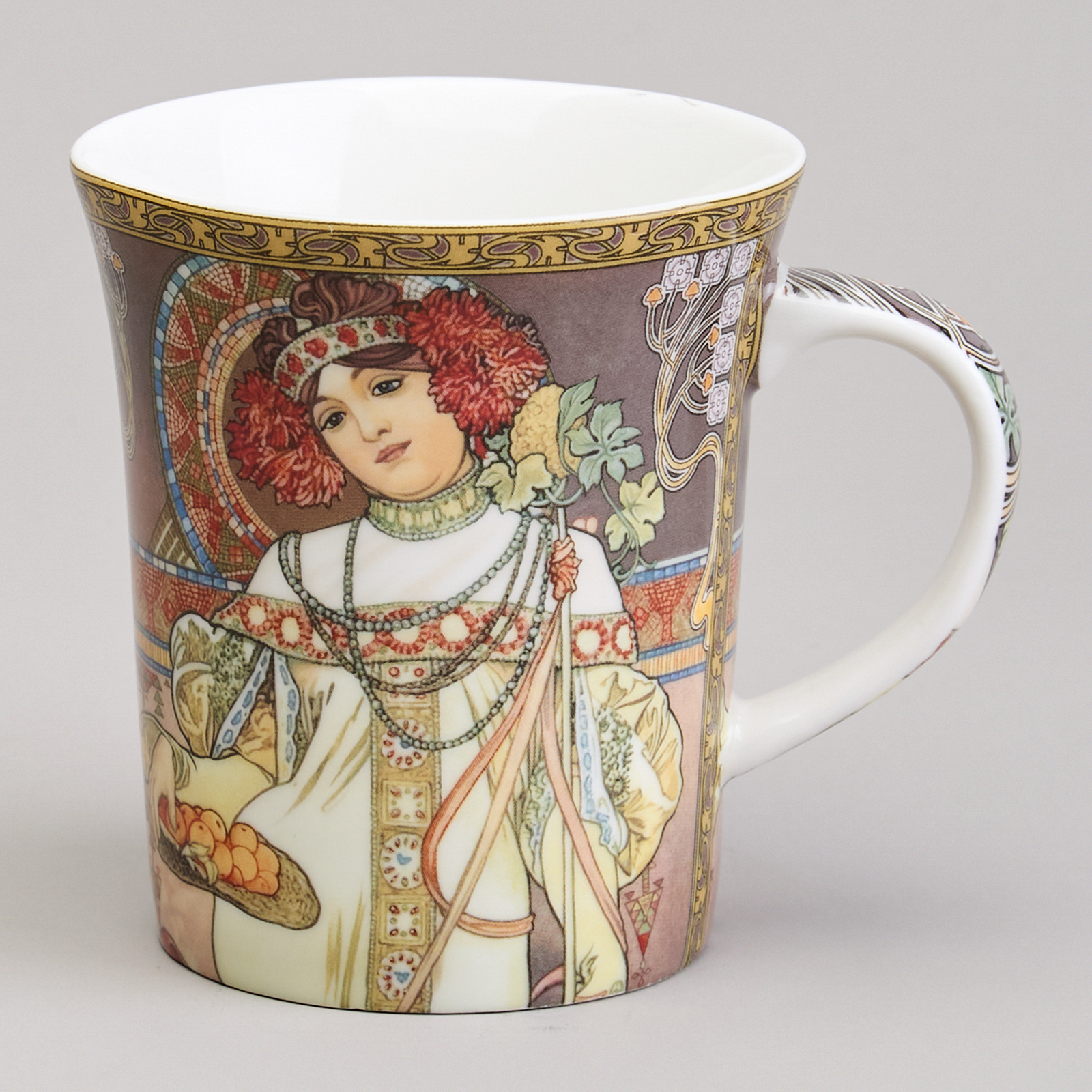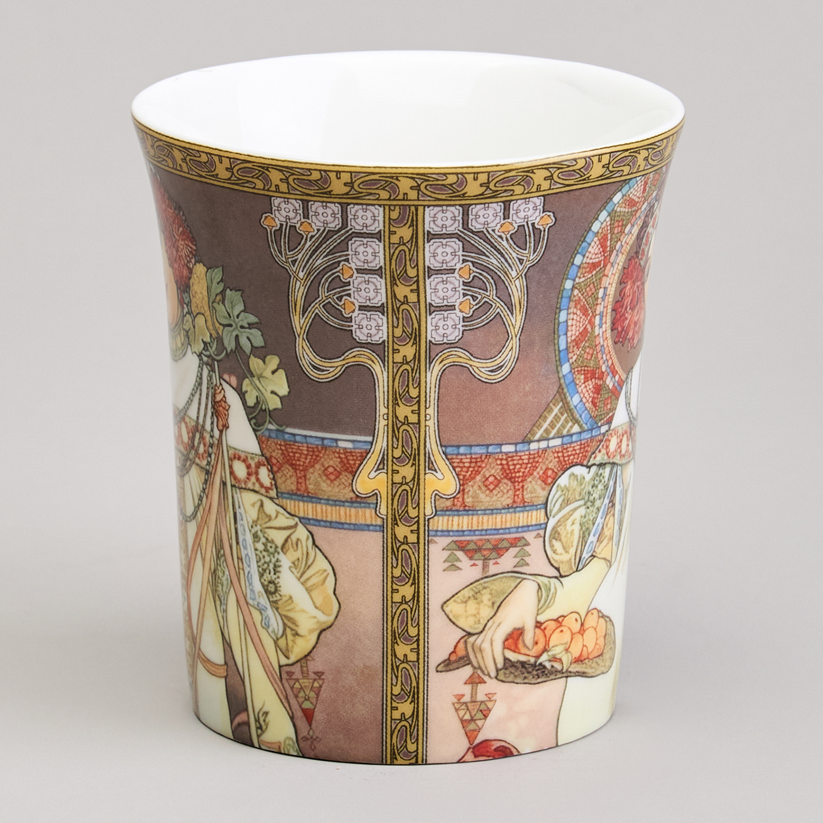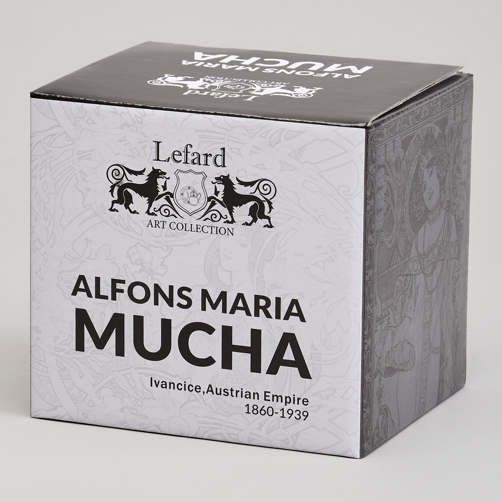Арт Коллекция для ценителей прекрасного. Изделия из тонкостенного фарфора. Посуда прошла сертификацию, безопасна для контакта с пищевыми продуктами. Декор по мотивам картин Альфонса Мария Мухи. Удобная форма. Отличный подарок. Можно использовать в микроволновой печи и мыть в посудомоечной машине.