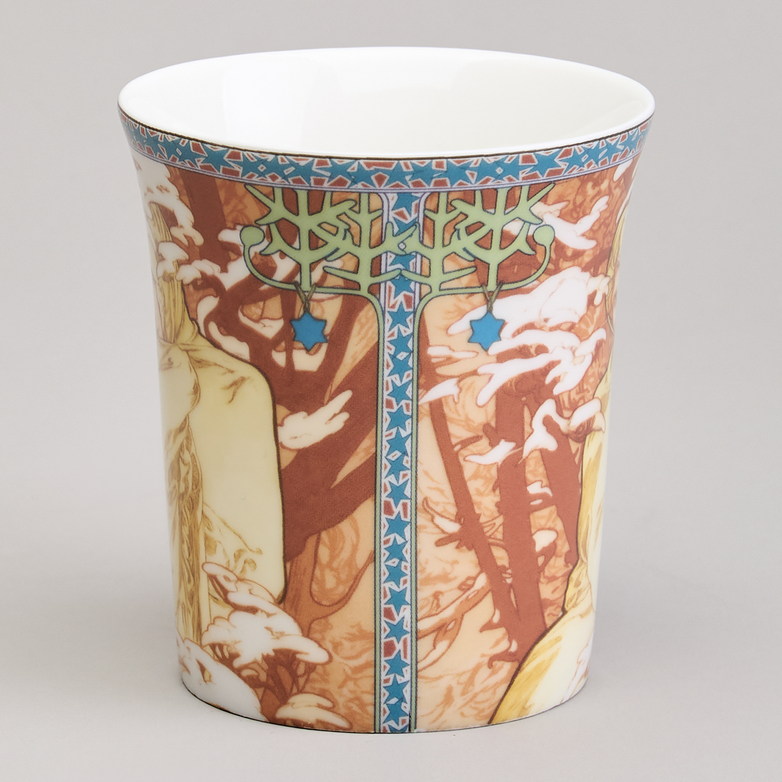 Арт Коллекция для ценителей прекрасного. Изделия из тонкостенного фарфора. Посуда прошла сертификацию, безопасна для контакта с пищевыми продуктами. Декор по мотивам картин Альфонса Мария Мухи. Удобная форма. Отличный подарок. Можно использовать в микроволновой печи и мыть в посудомоечной машине.