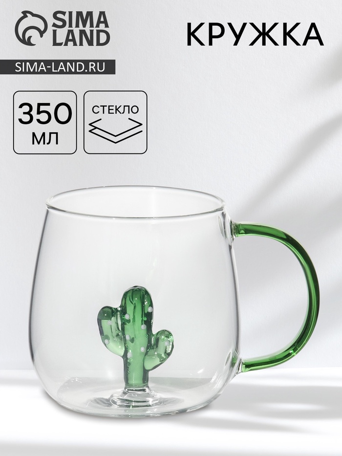 Кружка «Серен. Кактус», 350 мл, с фигуркой на дне, стекло, прозрачная, зелёная