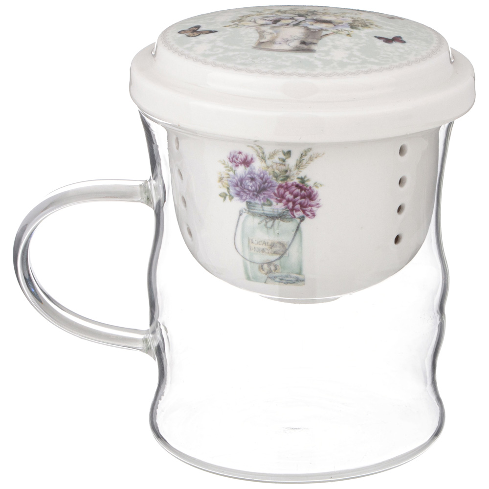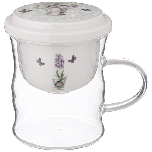 КРУЖКА СТЕКЛЯННАЯ С ФАРФОРОВЫМ СИТОМ LEFARD ЛОРИАН 420 МЛ
