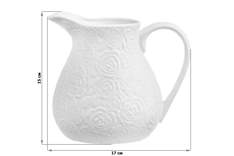 Кувшин из серии «Розы» объемом 1,2 л выполнен из высококачественного фарфора с рельефным рисунком. Белоснежный фарфор и изящная классическая форма подходит любой сервировке и добавит уюта в каждый дом. Кувшин может стать прекрасной альтернативой скучным пакетам сока и отлично подходит для сервировки компотов и любых других напитков. В серии посуды из белого фарфора представлен широкий ассортимент товаров для сервировки стола, которые, несомненно, впишутся в любой интерьер благодаря лаконичному дизайну, натуральным материалам и высокой функциональности. Такому подарку будет рада любая хозяйка!