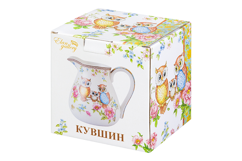 Кувшин из серии «Совушки» от Elan Gallery предназначен для эстетичной сервировки стола. Размер изделия – 17х13,5х15 см, объём – 1,2 литра. Выполнен из фарфора нового поколения new bone china, сочетающего в себе изящность и высокую прочность. За счёт гладкости изделия легко отмываются, поэтому сохраняют привлекательный внешний вид и практичны в использовании. Плотная структура материала позволяет посуде дольше сохранять температуру блюд и напитков. От других видов костяного фарфора new bone china отличается большей экологичностью в производстве. Поверхность изделия украшает забавный рисунок: две совы и маленький совёнок с большими глазами сидят на ветке дерева. Нежные бутоны розовых и голубых цветов, а также растительный узор на фоне придают композиции сказочности и тепла. Наполненный соком или лимонадом, сосуд поможет организовать дружеские встречи и украсит ваш стол. Подойдёт для изящной подачи ваших любимых напитков. Используйте его в качестве молочника – он станет идеальной альтернативой скучным пакетам молока. Заполните чистой питьевой водой или самодельным компотом, эстетично подавайте большие объёмы чая и кофе. Не рекомендуется применять абразивные моющие средства. Подходит для использования в посудомоечной машине. Поставляется в дизайнерской картонной коробке – благодаря ей вам не потребуется дополнительная подарочная упаковка. Фарфоровая сервировочная посуда будет оригинальным подарком для хозяйки, ценящей не только практичность, но и привлекательность. Серия «Совушки» от бренда Элан Галерея станет украшением любого кухонного инвентаря и позволит собрать красивый сервиз в едином стиле!