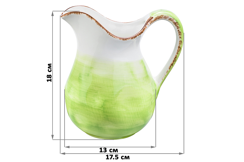 Кувшин объемом 1.2 л из серии «Кантри» выполнен из высококачественного фарфора по особой технологии обжига, при которой цвет распределяется по посуде градиентом и не тускнеет со временем. Современный необычный дизайн — вся посуда этой серии выполнена в особой технике «мятой бумаги», в производстве которой используется только высококачественный костяной материал. Кувшин оптимальной формы и объема приятно ложится в руку и станет прекрасной альтернативой скучным заводским пакетам сока и пластиковым бутылкам. В ассортименте серии также представлены столовые и десертные тарелки, салатники, кружки и чайные пары в двух расцветках — зеленой и голубой, которые можно использовать как одной серией, так и миксом, так как все цвета прекрасно сочетаются друг с другом