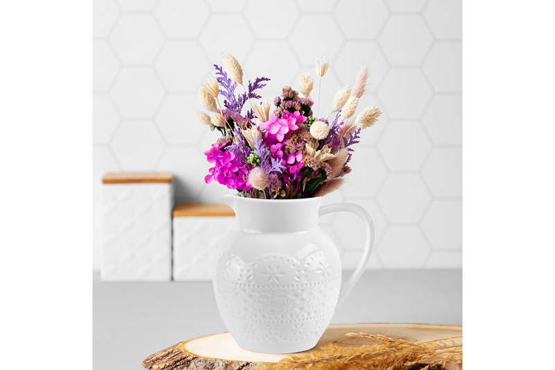 Кувшин из серии «Кружево» от Elan Gallery предназначен для эстетичной сервировки стола. Размер изделия – 16х13х15,5 см, объём – 1,3 литра. Выполнен из высококачественного белого фарфора. Он не впитывает цвет напитков и легко отмывается, благодаря чему надолго сохраняет свою белизну. Поверхность изделия украшают рельефные узоры, напоминающие тонкое кружево. Наполненный соком или лимонадом, сосуд поможет организовать дружеские встречи и украсит ваш стол. Подойдёт для изящной подачи ваших любимых напитков. Используйте его в качестве молочника – он станет идеальной альтернативой скучным пакетам молока. Заполните чистой питьевой водой или самодельным компотом, эстетично подавайте большие объёмы чая и кофе. Не рекомендуется применять абразивные моющие средства. Подходит для использования в посудомоечной машине. Поставляется в дизайнерской картонной коробке – благодаря ей вам не потребуется дополнительная подарочная упаковка. Фарфоровая сервировочная посуда будет оригинальным подарком для хозяйки, ценящей не только практичность, но и привлекательность. Серия «Кружево» от бренда Элан Галерея станет украшением любого кухонного инвентаря и позволит собрать красивый сервиз в едином стиле!