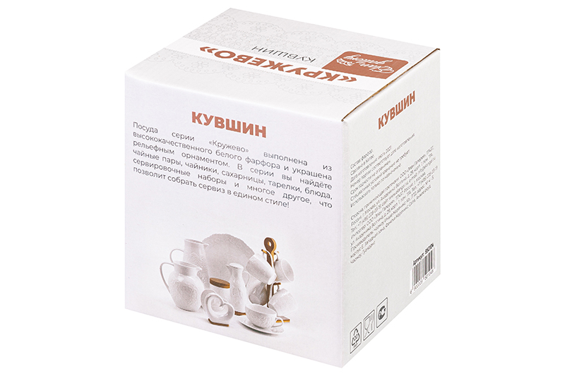 Кувшин серии «Кружево» объемом 1,3 л выполнен из высококачественного белого фарфора с рельефным рисунком. Кувшин прекрасно подходит для сервировки домашних компотов, лимонадов, холодного чая и любых других напитков. В прекрасной серии фарфоровой посуды представлен широкий ассортимент товаров для сервировки стола, которые несомненно впишутся в любой интерьер благодаря лаконичному дизайну и высокой функциональности. Такому подарку будет рада любая хозяйка!