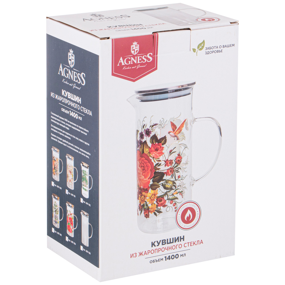 Стеклянный кувшин выполнен из термостойкого жаропрочного стекла, которое выдерживает высокую температуру кипящей воды.