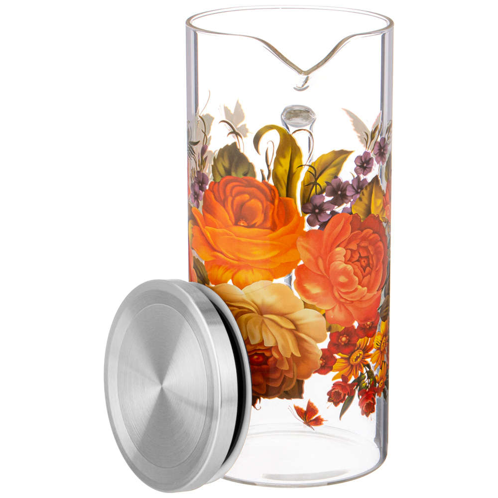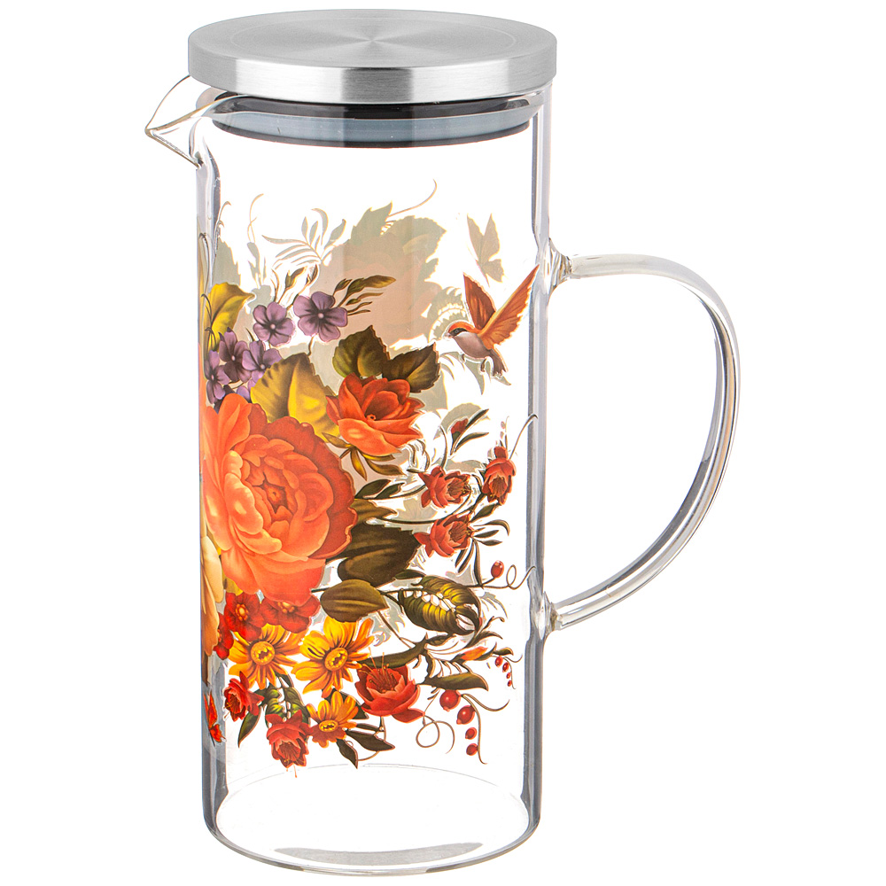 Кувшин оснащен удобной ручкой и плотно закрывающейся крышкой.