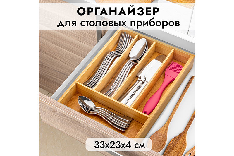 Лоток для столовых приборов 33*23*4,5 см, бамбук