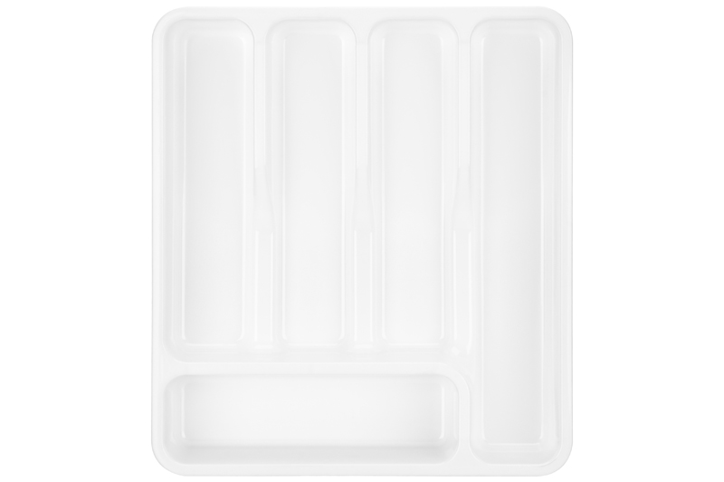 Широкий лоток для столовых приборов и кухонной утвари белого цвета от ELCASA поможет в организации компактного хранения и поддержании порядка. Размер контейнера – 33х29,5х5,3 см. Органайзер имеет 5 отделений разного размера: 3 отделения по 23,5х6х5 см, 1 отделение 31х6х5 см и 1 отделение 20х6х5 см. При выборе органайзера для своего выдвижного ящика на кухне ориентируйтесь на указанные параметры. Ёмкость с секциями выполнена из пищевого пластика – полипропилена. Он не выделяет вредных веществ, что является находкой для ценителей экологичных материалов. Горизонтальная подставка подойдёт для хранения ложек, вилок, ножей и прочего кухонного инвентаря. Можно использовать в офисе или дома как систему хранения канцелярии в ящичке рабочего стола. Органайзер с разделителями подойдёт для хранения письменных приспособлений, канцелярских принадлежностей и различных аксессуаров и мелочей. Пластиковый лоток поможет эффективно использовать пространство и уместить большое количество вещей. Не рекомендуется применять абразивные моющие средства. Компактный ящик с секциями позволит поддерживать порядок на вашей кухне и держать кухонные приборы и хозяйственные инструменты под рукой. В коллекции бренда ELCASA представлено много функциональных товаров для дома, которые привнесут комфорт и уют в домашний интерьер.