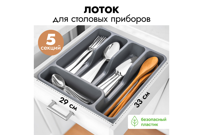Лоток для столовых приборов широкий 33*29,5*5,3 см серый (740018)