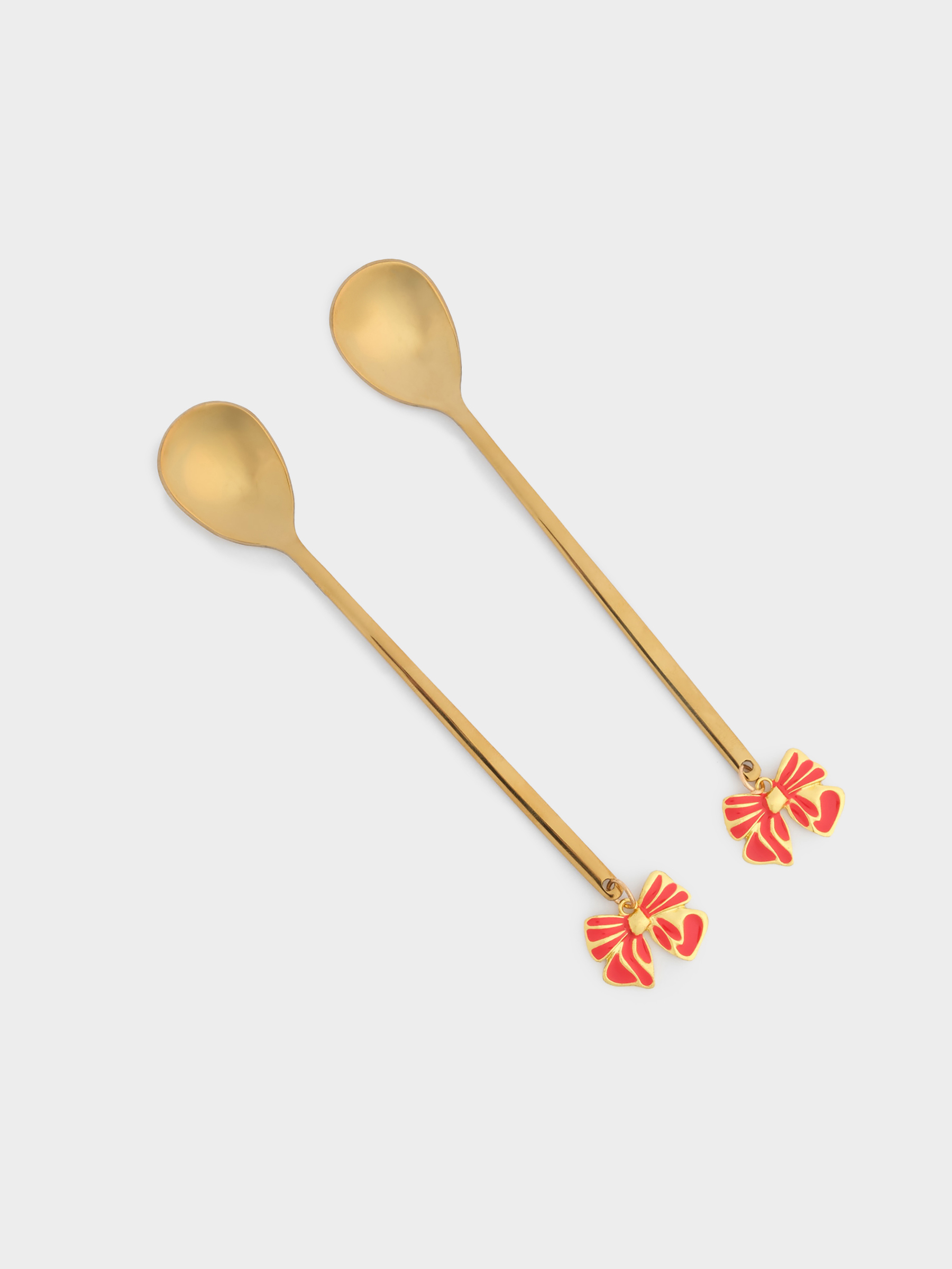 Ложка десертная, 15 см, 2 шт, сталь, золотистая, Бант, New year