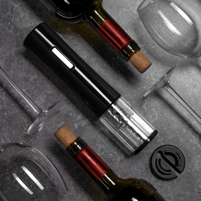 [Штопор LSH-01 - ваш незаменимый помощник для домашних встреч.122][Набор сомелье - современный и стильный подарок для ценителей вин.122][Резак для фольги поможет убрать этикетку одним лёгким движением руки.122][Электроштопор откупорит бутылку вина и поможет без труда извлечь пробку.122]Комплектация
