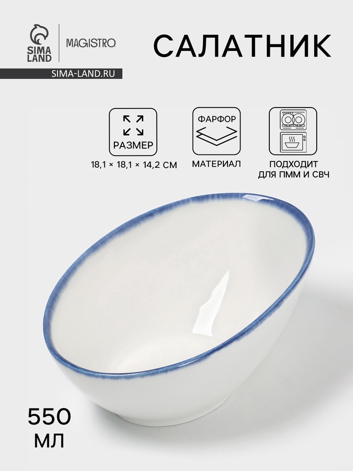 Элегантная фарфоровая салатница в белом цвете с нежными голубой полосой — универсальный акцент для сервировки. Гладкий глянец фарфора приятен на ощупь, а овальная форма (18,1×14,2 см) удобна для подачи салатов, закусок или горячих блюд. Объём 550 мл идеален для семейных обедов или ужинов с гостями.