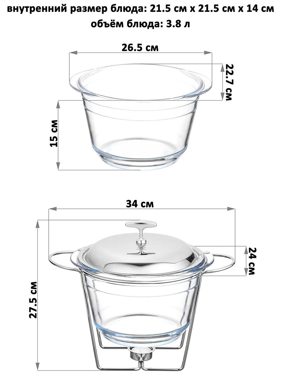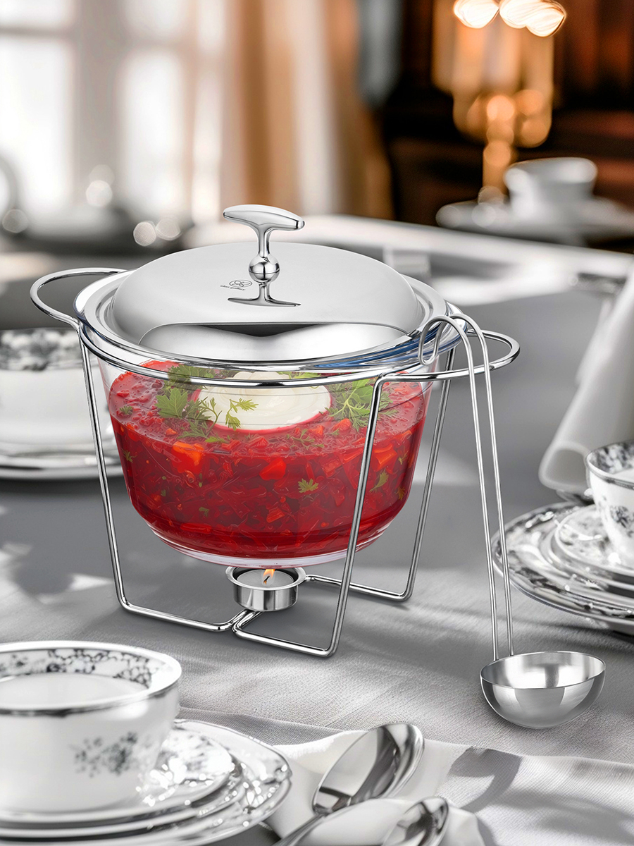 Мармит 3,8 л 34*24*27,5 см "Круглый" с половником, с крышкой из нержав. стали, на подставке, стекло