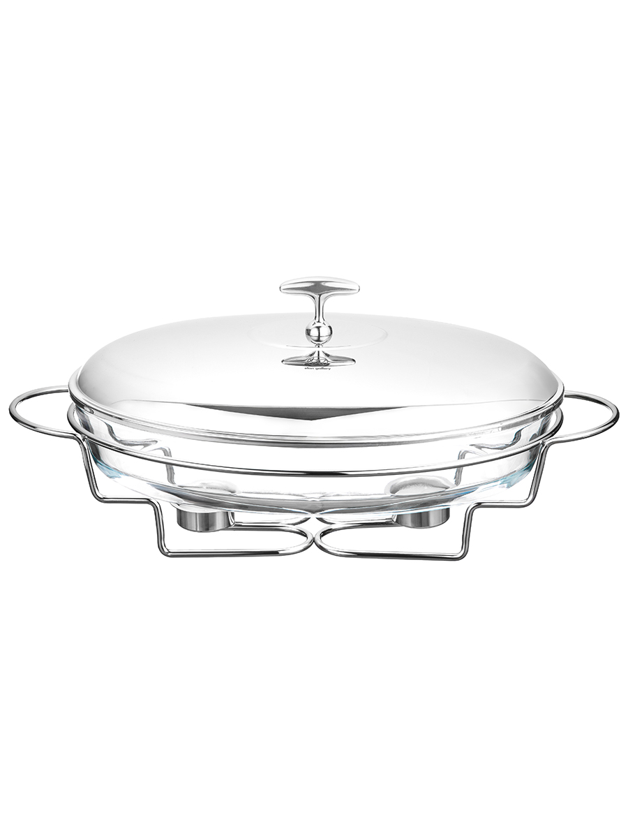 Мармит 3 л 43,5*24,5*19 см "Овальный" с крышкой из нержавеющей стали, на подставке, стекло