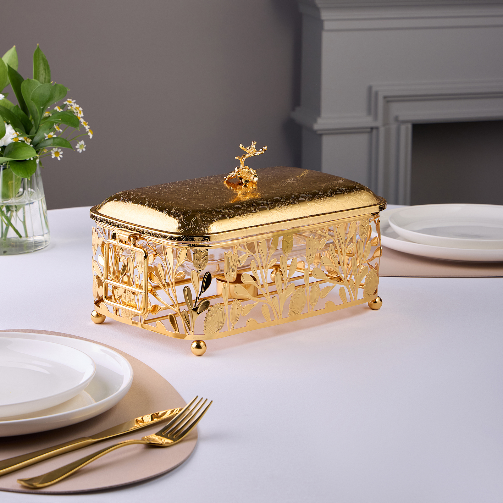 Цветочный декор и орнамент на крышке, а также интересная ручка с птичкой добавят атмосферу праздника.