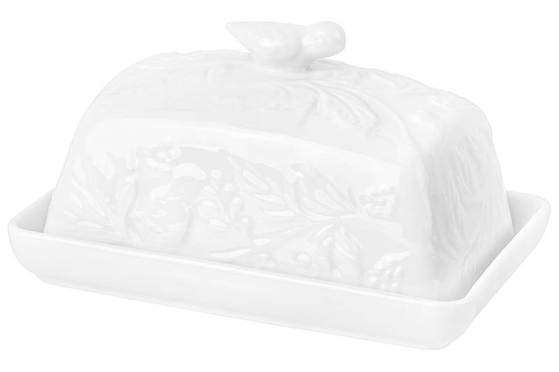 Масленка с крышкой серии "Птички на ветке" 13,5х9х8 см выполнена из белого фарфора и украшена рельефными узорами. Фарфоровое изделие создано для эстетичной подачи масла на стол во время завтрака или чаепития. При хранении в холодильнике сливочное масло не будет впитывать запахи других продуктов благодаря крышке. В фарфоровую ёмкость помещается кусок масла 9,5х5х4 см. Масленка сохранит его натуральный запах и насыщенный вкус. Можно использовать в роли контейнера для кусочков сыра. В серии "Птички на ветке" также представлены другие товары для сервировки стола и красивый кухонный инвентарь, что позволяет собрать сервиз на свой вкус. Не рекомендуется применять абразивные моющие средства. Можно мыть в посудомоечной машине. Поставляется в стильной коробке. Станет чудесным подарком на любой праздник. Серия посуды "Птички на ветке" создаст в вашем доме уютную атмосферу и станет украшением любой кухни! В ассортименте бренда Elan Gallery вы найдёте много красивых товаров для создания комфорта и уюта в доме и кухонных принадлежностей.