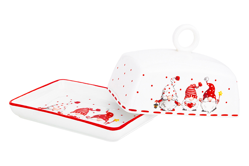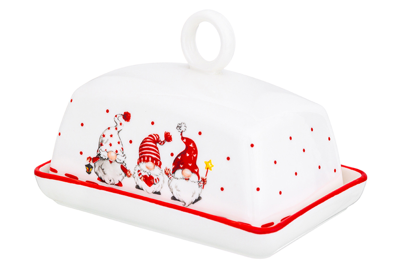 Масленка серии "Веселые гномики" 13,5х9х8 см позволит вам эстетично подавать масло на стол - идеально для завтраков и чаепитий! Масленка выполнена из высококачественного фарфора и украшена яркими изображениями гномиков. Гномы, маленькие новогодние помощники, принесут праздничную атмосферу и подарят каждому хорошее настроение. При хранении в холодильнике масло не будет впитывать запахи других продуктов благодаря крышке. Масленка сохранит его натуральный запах и насыщенный вкус. В масленку помещается кусок масла 9,5х5х4 см. Масленку можно использовать в микроволновой печи и посудомоечной машине. Поставляется в стильной картонной упаковке. Масленка из серии посуды "Веселые гномики" сможет стать настоящим украшением кухни или приятным подарком для ваших родных и близких!