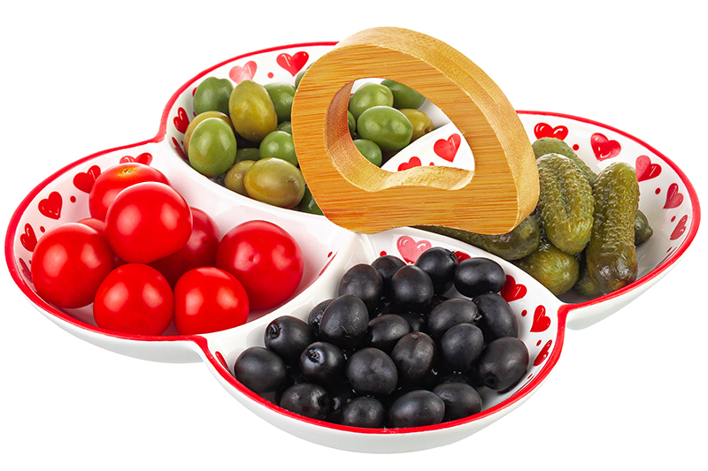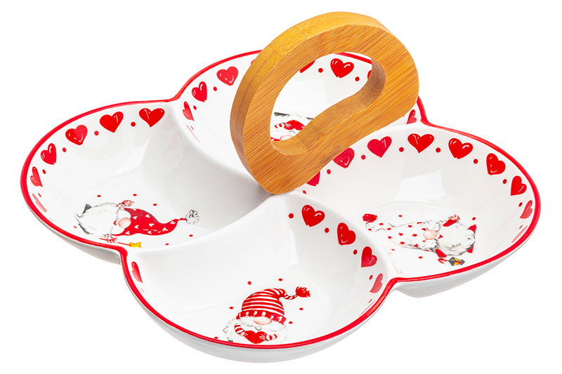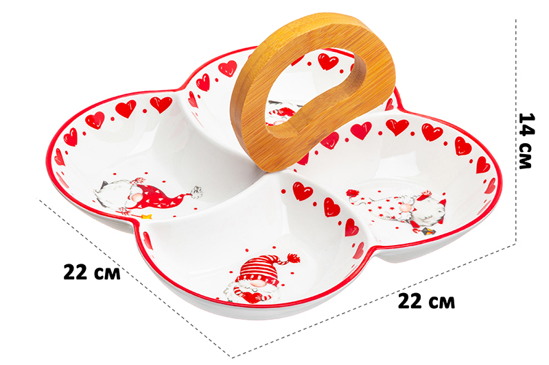 Менажница 22*22*14 см "Весёлые гномики" цельная 4 секции + дерев. ручка