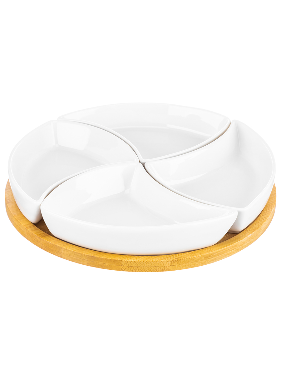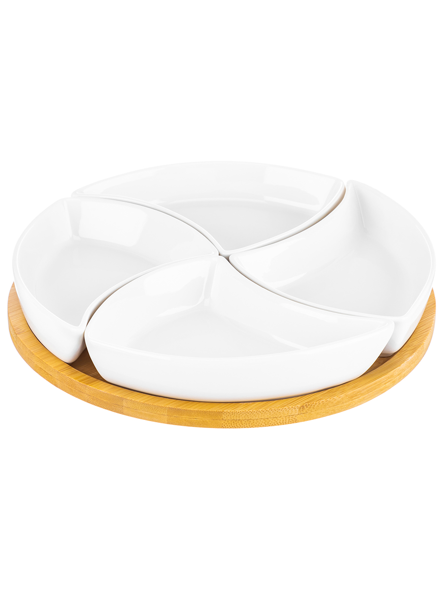Менажница 25*25*5 см "Айсберг" крутящ. 4 секции на дерев. подставке