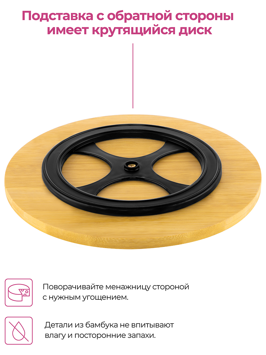 Менажница 25*25*6 см "Цветущая сакура" 4 секции на крутящ. дерев. подставке